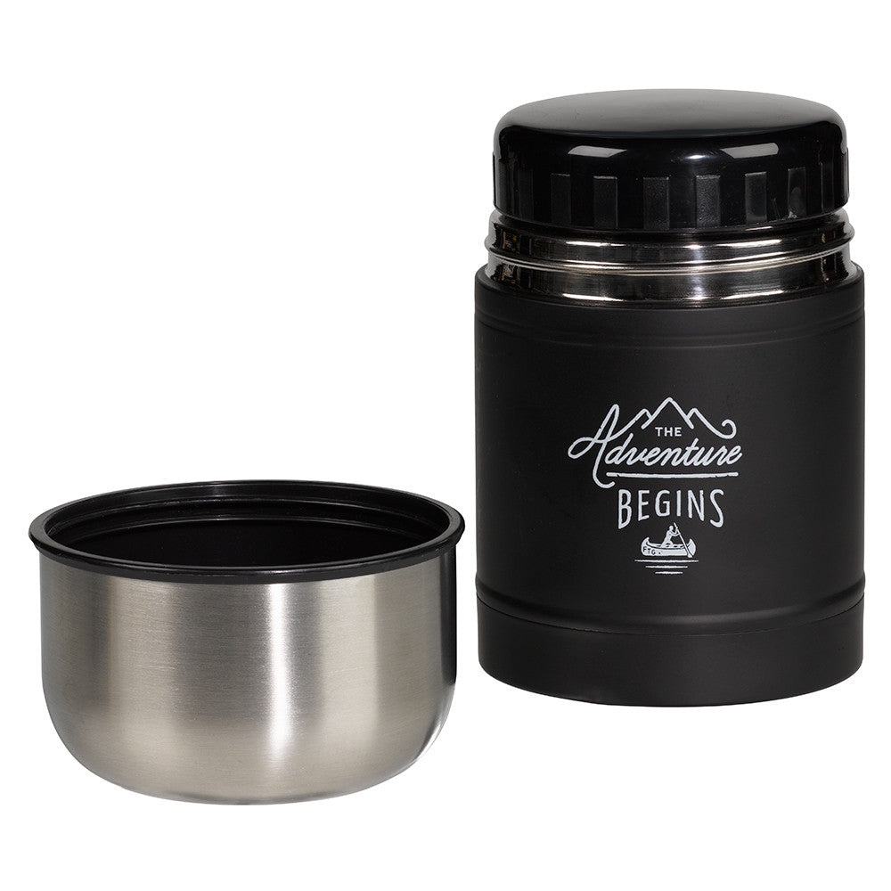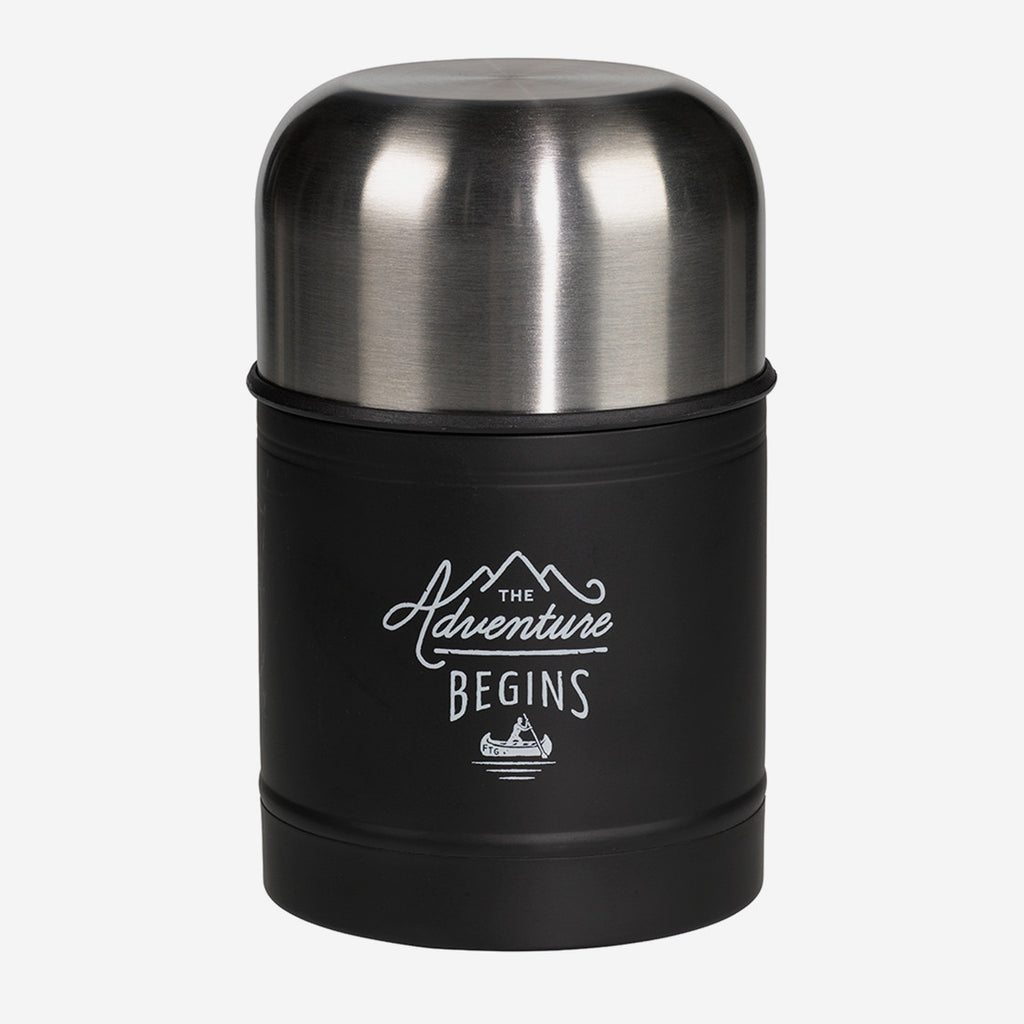 A simple solution to an age-old dining dilemma. Now you can take soups and stews with you wherever you go, in this wide-neck flask with clever lid that also doubles up as a small bowl. Comes with a smart matte black finish, brushed aluminium lid, and the words “The Adventure Begins”.