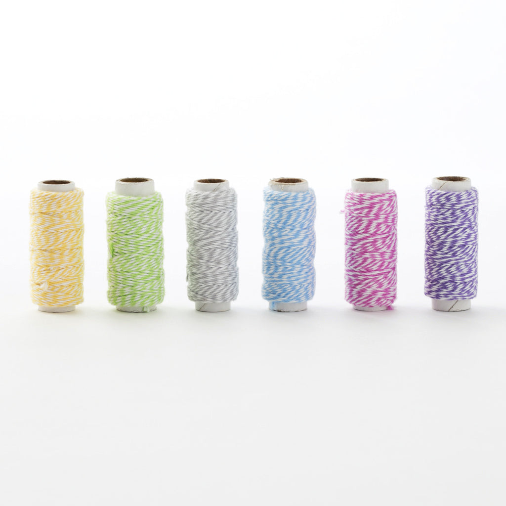 With double the colored string of a traditional baker's twine, these crafty cords are a great way to add dimension and style to any project. Twine is 100% cotton and is 20 yards per roll.