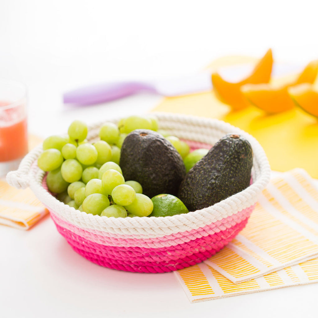 Add a serious pop of color to your kitchen with these DIY rope bowls. We give you 30ft. of cotton rope to make either two snack bowls or one large fruit bowl.