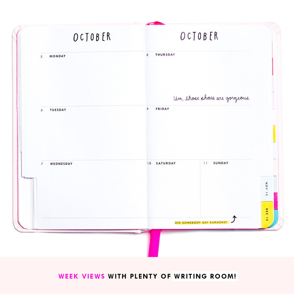 So did being organized just get cool? Yup, it totally did! Whoever said planning wasn't fun clearly never set eyes on this gem! Loaded with function and compliments, and not to mention weekly "fun" to-dos, these agendas are a must-have! we promise you'll be absolutely entertained, while becoming the most efficient gal on the block. grab one for yourself and one for your bestie! Oh, and check out all of these great features below: