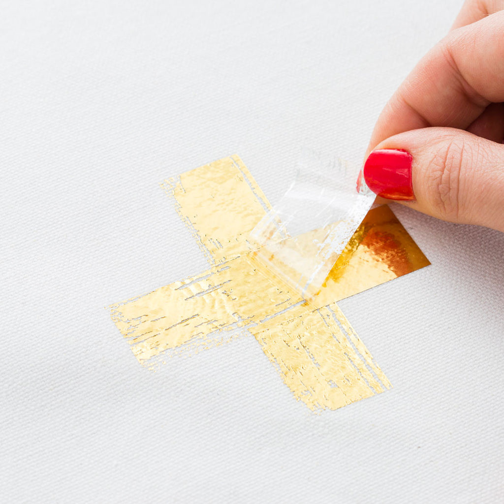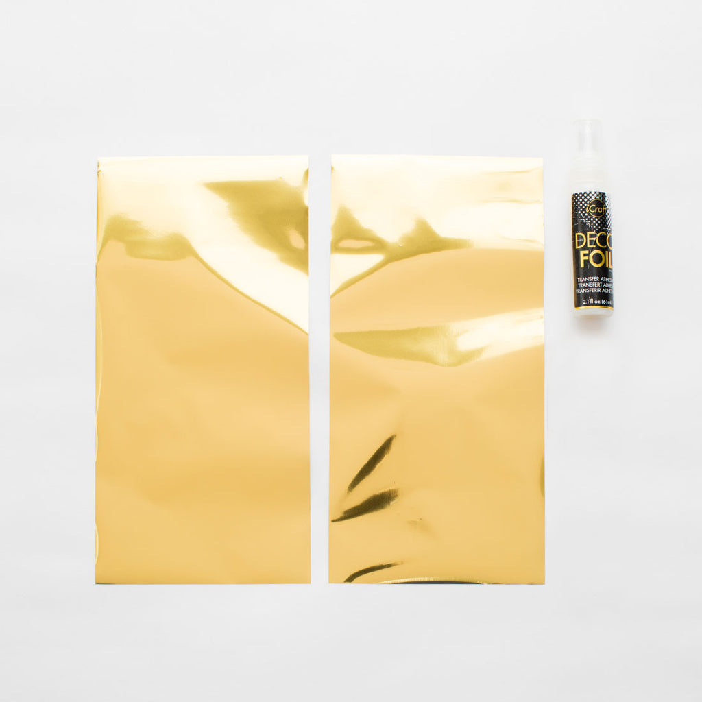 Add a touch of gold to fabric items using this hand-washable transfer foil and adhesive. Apply adhesive using brushes, stencils, silk screens, or stamps and heat set using a standard household iron.
