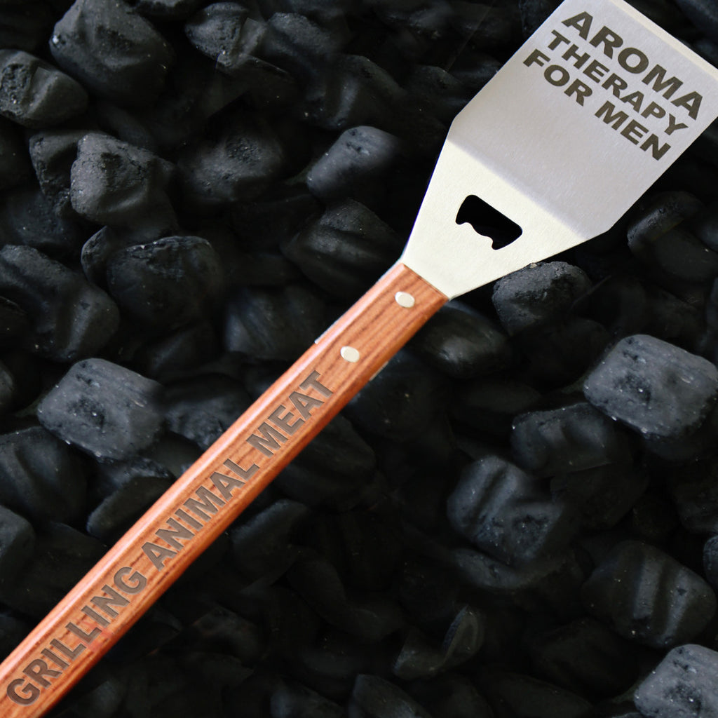 Material: Solid Rosewood Handle. Built-in bottle opener. Heavy-weight stainless steel turnerSize: 18.5"