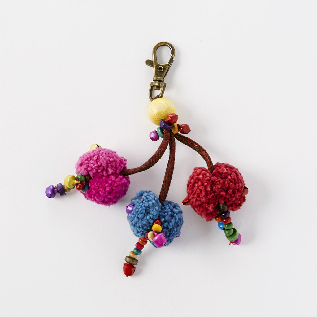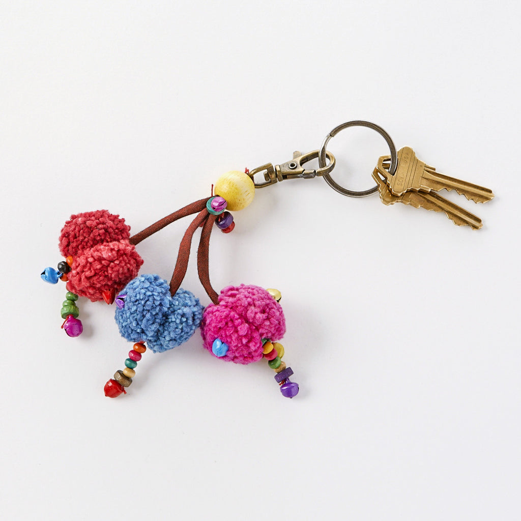 Enhance your handbag, coin purse or keys with this cute handmade pom pom zipper pull/keychain! Handmade in Thailand by the HMONG hill tribes of Lanna Country (Northern Thailand).