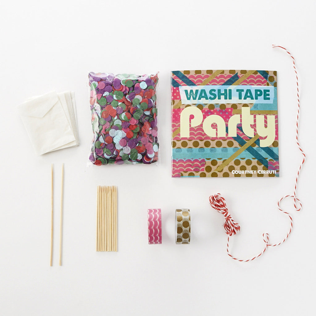 The Washi Tape Party Creative Craft Kit shows how easy it is to create beautiful projects using this versatile and inspiring material. This kit, which is an extension of Quarry's book Washi Tape, includes project ideas for parties, washi tape, wooden picks, and twine. If you have never heard of washi tape, get ready to enter a bright new world of paper crafts! Originating in Japan, washi tape is low tack, slightly transparent, and comes in a mix of adorable colors and patterns, you have a brilliant way to make all of your crafts even better!